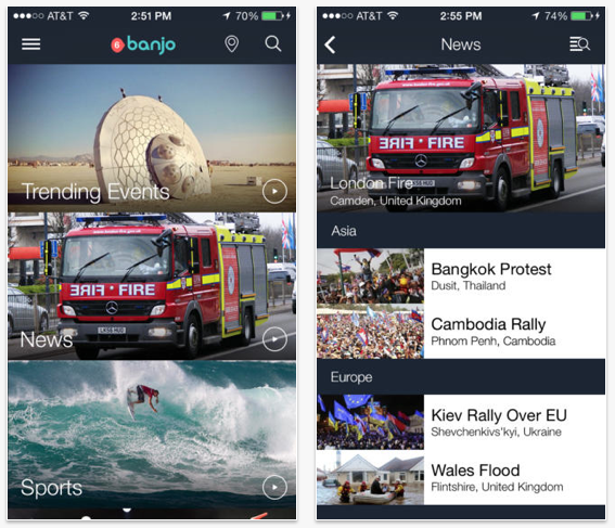 Banjo aggregates social posts from apps including Facebook, Google+, Instagram, Vine, Twitter and Europe’s VK.com. It uses algorithms to check the authenticity of comments, photos and videos, and filter out selfies and other irrelevant content.