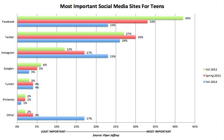 According to a Pew Report, one fourteen-year-old girl stated, “I got mine [Facebook account] around sixth grade. And I was really obsessed with it for a while. Then towards eighth grade, I kind of just — once you get into Twitter, if you make a Twitter and an Instagram, then you’ll just kind of forget about Facebook, is what I did.”